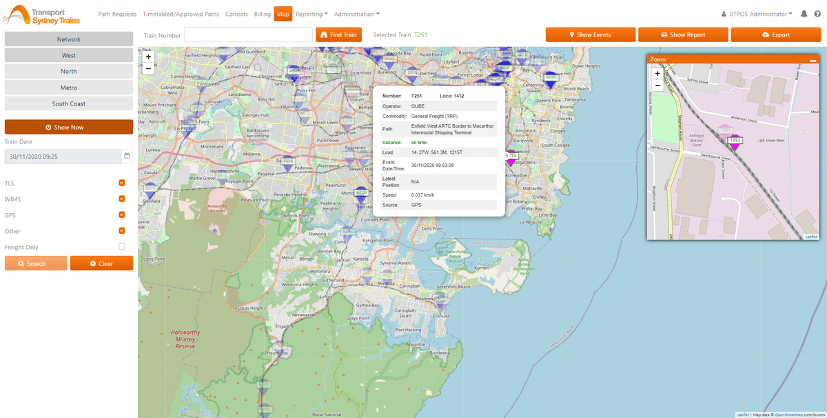 The latest position of each train is able to be viewed on the Train Map based on the latest train event information made available from the RIMs. A train running report is available to view the actual schedule of the train.